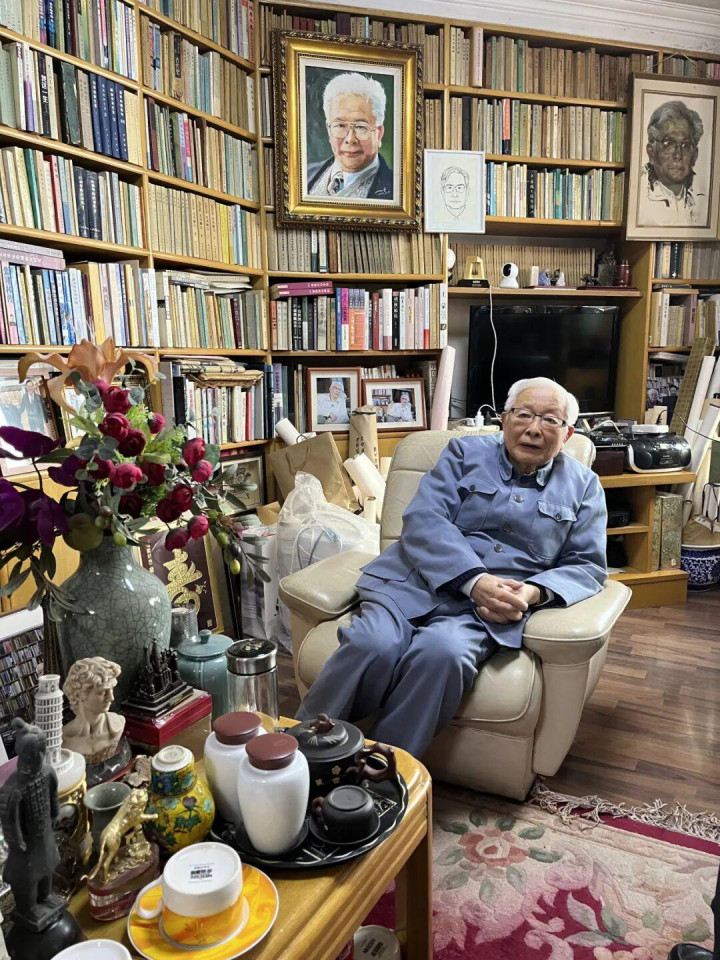 方汉奇先生在书斋(摄于2024年12月12日东说念主民日报出书社《方汉奇精选集》剪辑团队拜访时,梁雪云摄)