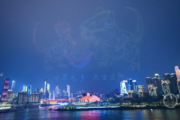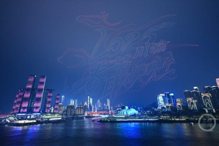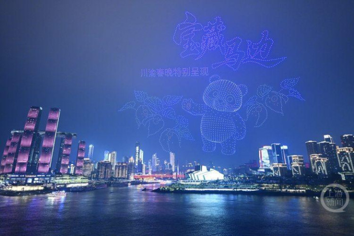 当晚七点半,“新韵重庆”无东谈主机饰演如约而至。和时时有所不同的是,本次展演中满满都是《2026川渝春节联欢晚会》的元素——科技之光在夜空中勾画出灵动的2026川渝春晚LOGO、重庆云阳的早面、史前恐龙、四川马边彝族自治县的熊猫与珙桐花海接踵明慧山城夜空,引颈着不雅众提前试吃这场会通川渝年味与多彩风情的“年夜饭”。