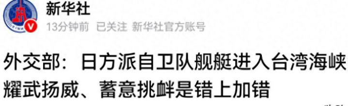如当天方军舰硬闯台海,既是对历史的顽抗,亦然对中日政事容或的公然撕毁。