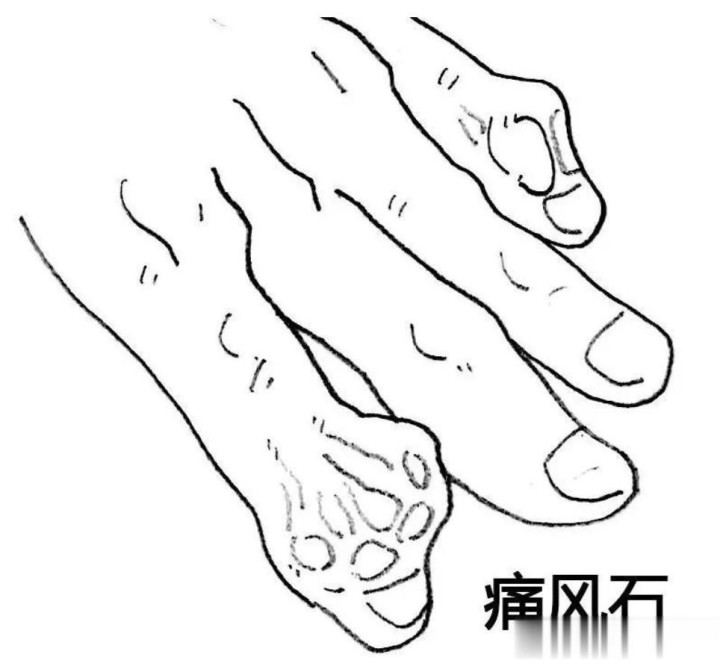 尿酸湿毒浊瘀执续侵袭络脉,聚结为痰核,也即是痛风石。痛风石进攻气血运转,导致络脉痹阻欠亨,阐发为枢纽肿胀、阴事、刺痛、结节乃至荒唐。