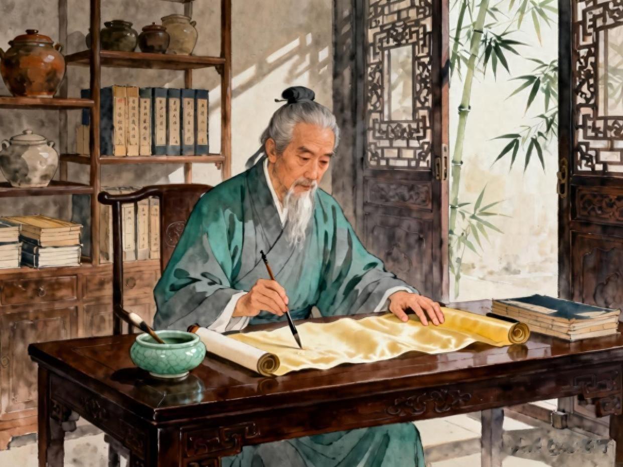 老者头发花白,面庞清癯,脸上布满了深刻的皱纹,但一对眼睛却非常亮堂,仿佛能洞穿东说念主心。