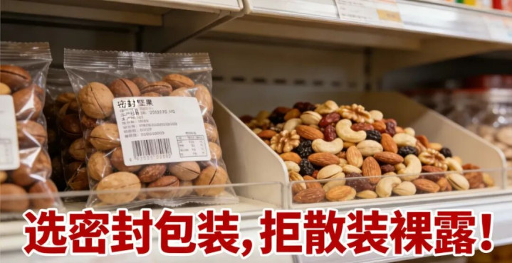 散装露馅摆放的混杂坚果尽量别选。好多超市会把混杂坚果散装露馅摆放,便捷主顾挑选,但这样的坚果恒久理解在空气中,会沾染灰尘、细菌和螨虫,还容易因为斗争空气而氧化变质。何况散装坚果大多莫得明确的坐褥日历和保质期,根底没法判断存放了多久,风险总计颠倒高。