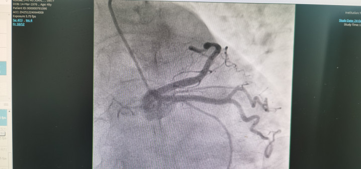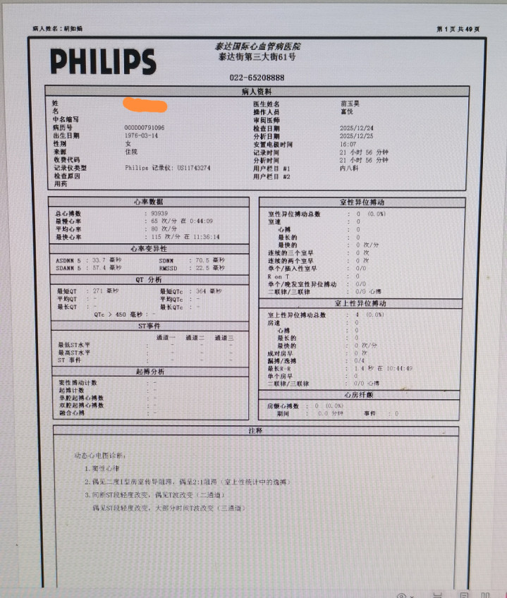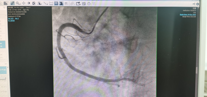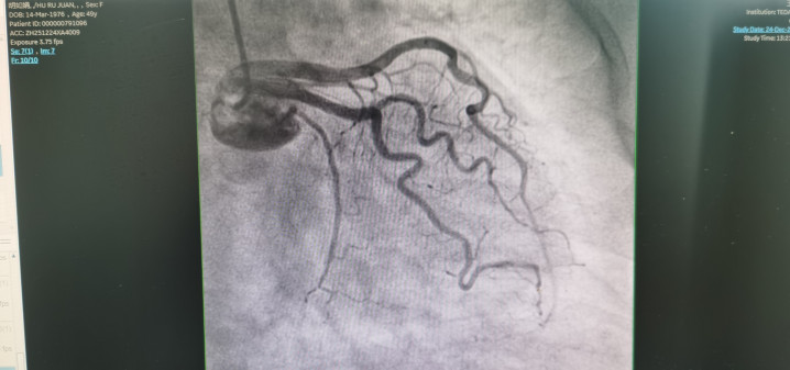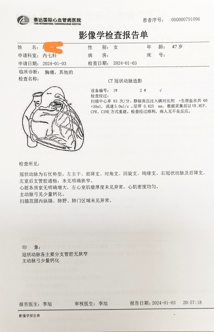 女性、49岁,1年前无任何诱因嗅觉心前区难堪,伴心慌气短,活动后加剧。既往有高血压病史,否定有糖尿病,不抽烟、不饮酒。否定家眷有心肌梗死、心绞痛病史。