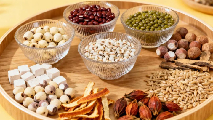 比如:莲子、白扁豆、茯苓、薏苡仁、芡实、怀山药、陈皮、山楂等。