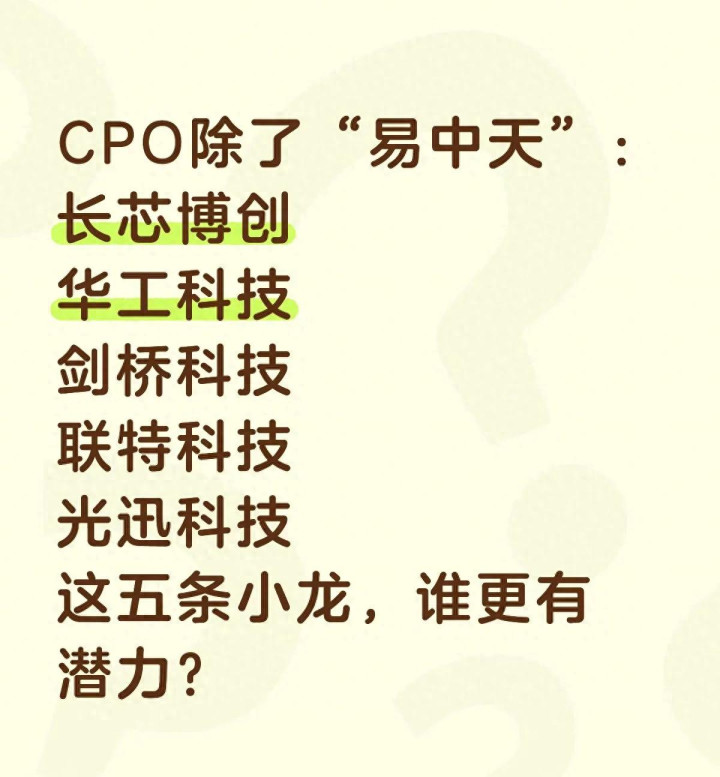 最近这段期间,A股市集里,CPO这个赛说念的热度,就没的确降下来过。不论是AI大模子的不竭迭代,照旧算力基础方法的大限制诞生,只须聊到这些话题,就绕不开CPO这个中枢技巧,也绕不开赛说念里的这些上市公司。许多东说念主聊起CPO,张口就提行业里的老年老,也便是股民们开打趣谐音出来的“易中天”,但关于绝大多数粗鲁投资者来说,更存眷的其实是:除了一经被市集充分订价的龙头,赛说念里这几家关注度居高不下的公司——长芯博创、华工科技、剑桥科技、联特科技、光迅科技,到底谁是确凿有实打实的技巧、事迹和产业布局相沿,谁仅仅借着风口蹭热度,谁又的确具备恒久走出来的后劲。