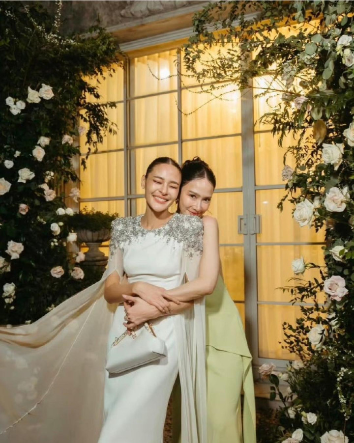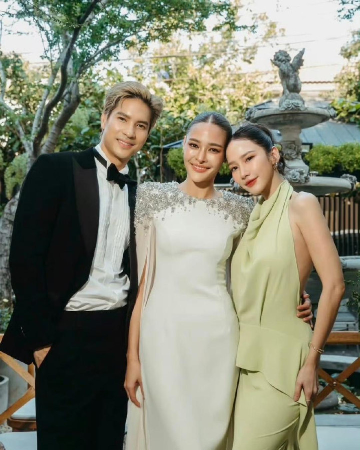 而Aump身穿浅绿色挂脖裙插足好姐妹Pooklook的婚典,打扮得很好意思,和新郎新娘站扫数合影,Pooklook更是和好姐妹Aump抱在扫数,两东谈主的好交情让旁东谈主选藏,Pooklook和Mike婚典皆举办一年多了,脾气憨直的Aump竟能守秘这样久。