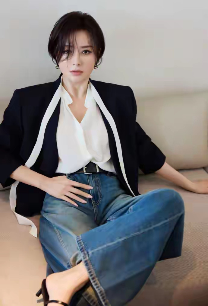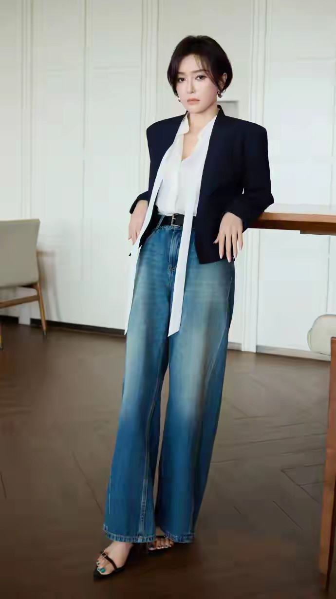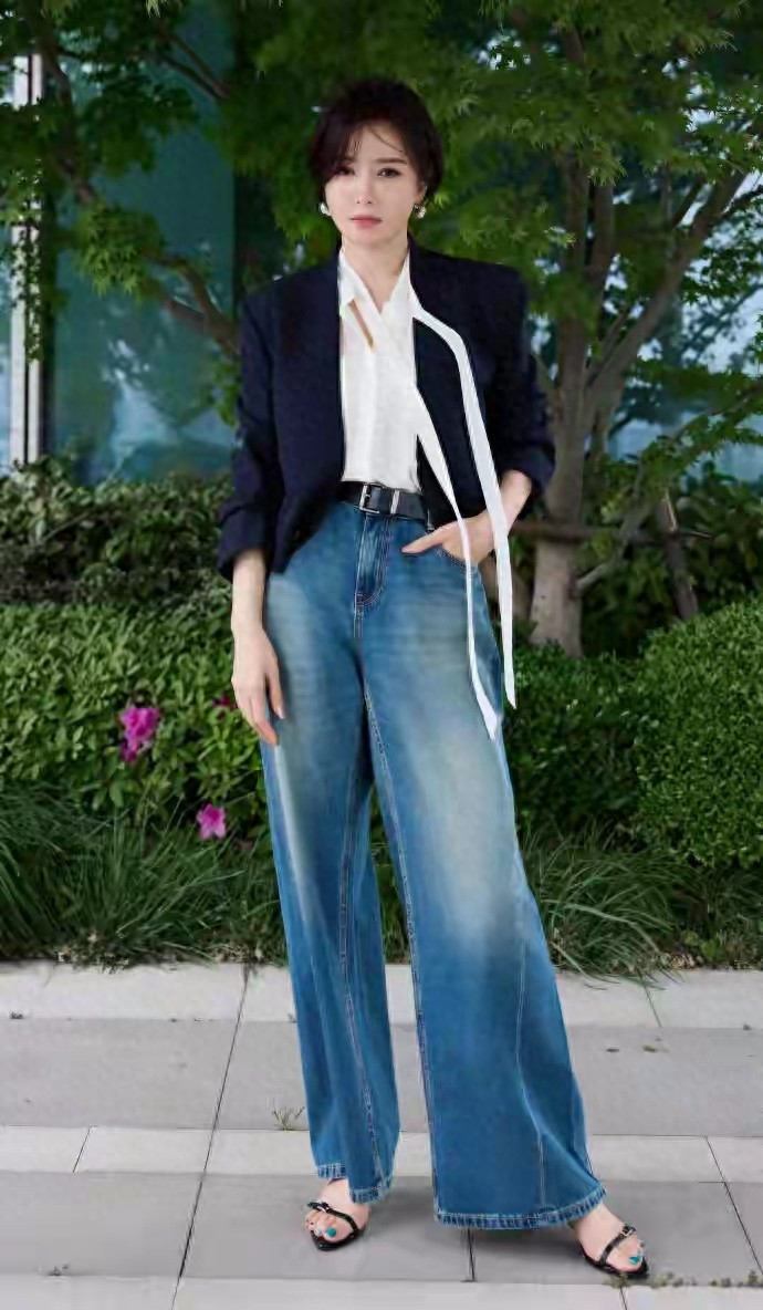 投注pp 秦岚阔腿牛仔裤配细带凉鞋, 这慵懒坐姿泄气极致雌性荷尔蒙