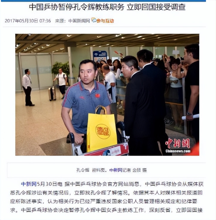 国度的反馈是飞速而决绝的。事发本日,中国乒协便发布公告,暂停孔令辉女乒主教学的服务,条目他立即归国领受探访。