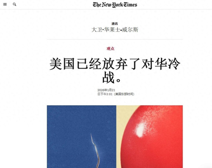 《纽约时报》宣告“好意思国已输掉对华新冷战”,天然表述略显夸张,但也从一个侧面反馈出一个事实:好意思国发起的对华“新冷战”,依然走到了止境。