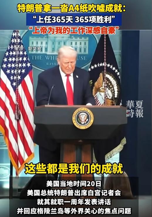 1月20日79岁的好意思国总统特朗普抱着一叠厚厚的文献,抬头阔步走入会场,这一天是他第二个总统任期在朝满一周年的日子,亦然他经心筹谋的“庆功日”。