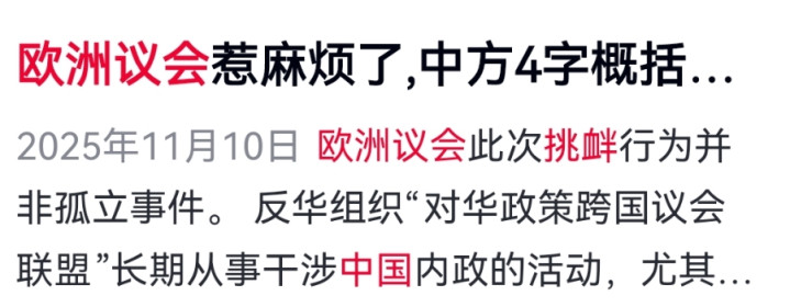 最近,欧洲议会的一系列操作几乎让东谈主怒形于色,活生生献技了一场乖张又无耻的“全面反华闹剧”,其背后藏着不成告东谈主的整个,中国岂会任其胡来?
