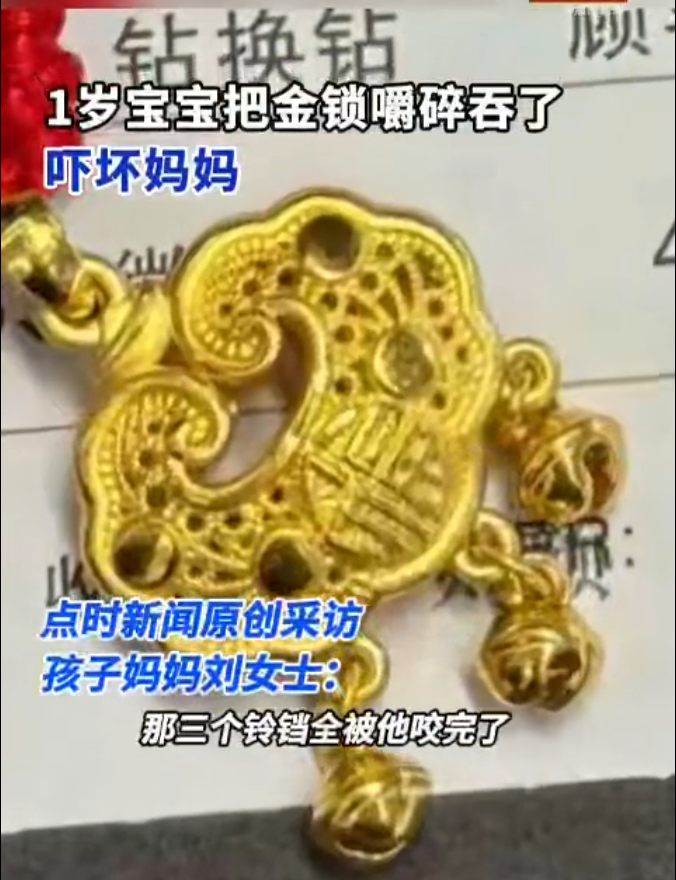 1月24日(采访技能),贵州贵阳,刘女士在外交平台发布视频称,我方一岁五个月的女儿,尽然在夜里趁她不讲究,把率领在身上的金首饰咬下来吃了。