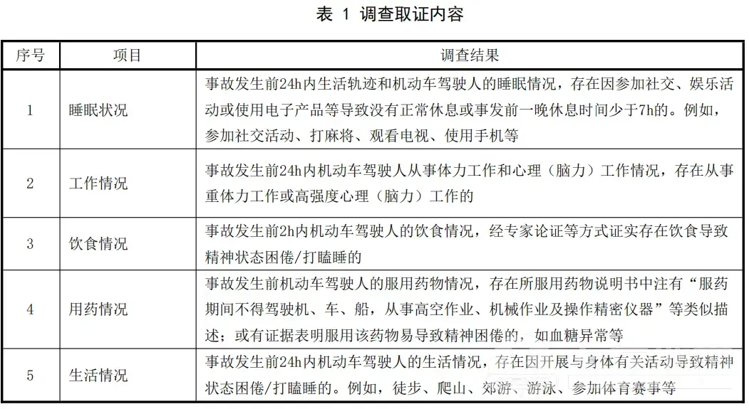 在洽商/讯问中主动发问“驾驶车辆途中直至发滋事故时你的精神状态若何? ”“驾驶车辆途中直至发滋事故时你是否曾感到痛苦困倦或打打盹儿? ”“你在驾驶车辆经过中身段疲惫/打打盹儿的状态握续了多万古辰;什么时辰运转,什么时辰扫尾。”等问题进行取证,字据灵活车驾驶东说念主的恢复笃定其是否处于痛苦困倦/打打盹儿状态下驾驶车辆。