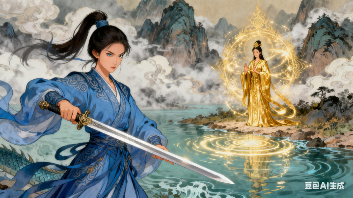龙吉公主探查多日,终于在昆仑秘境找到源泉,一位穿金袍的女子,正对着湟水施法。