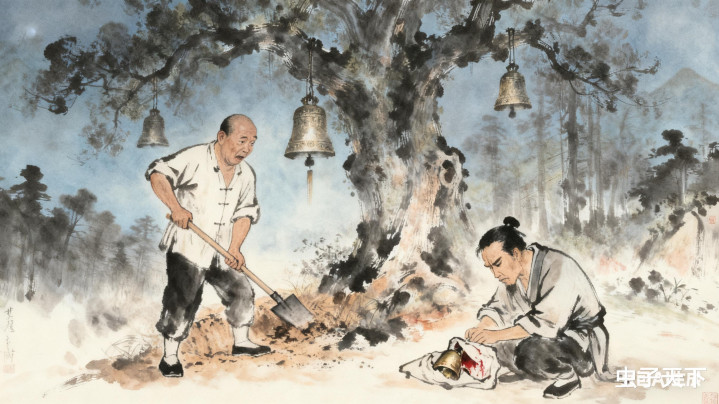 挖到深宵,土里真透露个布包,通达一看,恰是那铜铃,可铃身冰凉,上头还沾着血印。