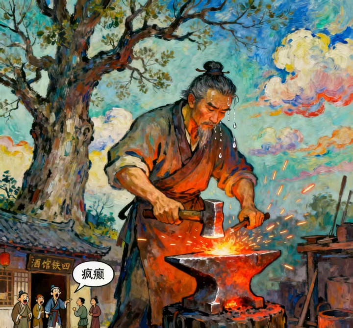 “齐说老陈头疯癫了,好铁不打刀斧,净虚耗在那铁片上。”酒馆雇主赵四常对宾客念叨,“敲了十年,就为那巴掌大的铁片,不是疯了是啥?”
