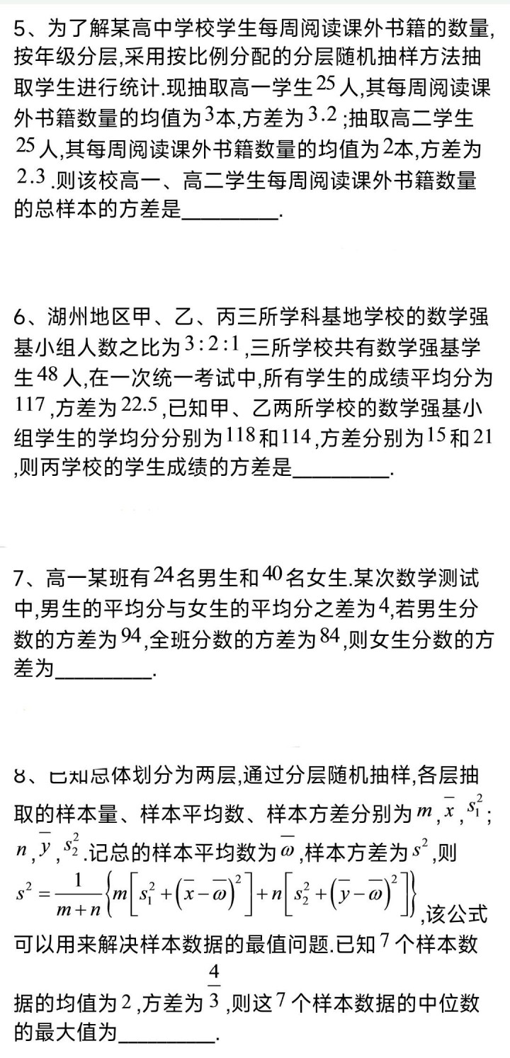 真钱投注平台 高一数学上期——分层抽样的平均数和方差同步强化及谜底