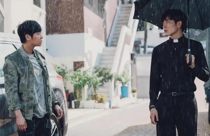 但《鬼客》最打动东说念主的,从来不是恐怖元素,而是三位主角的“抱团取暖”。灵媒尹华平,童年被恶鬼朴日图附身,亲眼看着母亲和奶奶惨死,一辈子都背着“罪东说念主”的桎梏;神父崔允,小时分目击哥哥被附身屠杀全家,我方荣幸存活,从此走上驱魔之路,却要技艺隐忍驱魔的疼痛;刑警姜吉英,母亲是被恶鬼杀害的视察,她带着仇恨和执念入行,起初根柢不信鬼神,直到亲目睹证离奇案件。