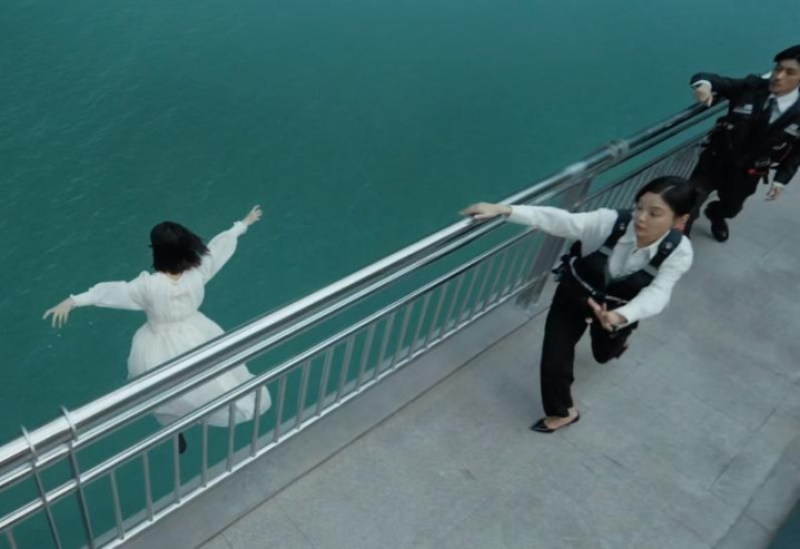 危险关头,一稔浮水衣的唐盈盈随着一跃而下,游入水里执住女孩的手。