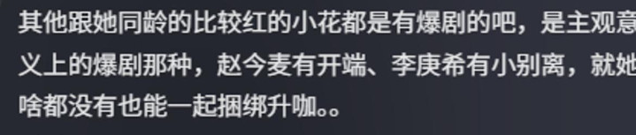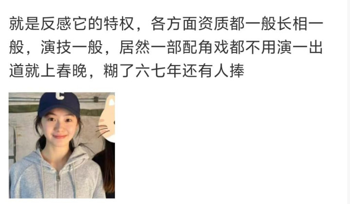 拍戏遵循欠安,并莫得妨碍她的资源,给东谈主嗅觉她仅仅拍几部网剧试水,转圜一下风评,坐窝又去拍央视正剧,资源给的太任性了。